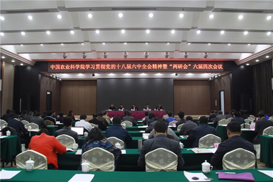 11月23-24日,中国农业科学院在长沙召开学习贯彻党的十八届六中全会精神暨院“两研会”第六届理事会第四次会议,深入学习贯彻党的十八届六中全会精神,进一步落实全面从严治党重大问题。院党组书记陈萌山出席会议并讲话,院党组副书记、副院长唐华俊作工作报告,通报了中央巡视整改任务完成情况,并对会议进行了总结。