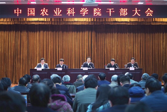 近日,中国农业科学院召开干部大会。中组部干部四局局长李春良宣布了中央关于唐华俊任农业部党组成员、中国农业科学院院长(副部长级),免去李家洋农业部副部长、党组成员、中国农业科学院院长职务的决定。农业部党组书记、部长韩长赋出席会议并讲话。农业部党组成员、人事劳动司司长毕美家,科技教育司司长廖西元出席会议。中国农科院党组书记陈萌山主持会议。