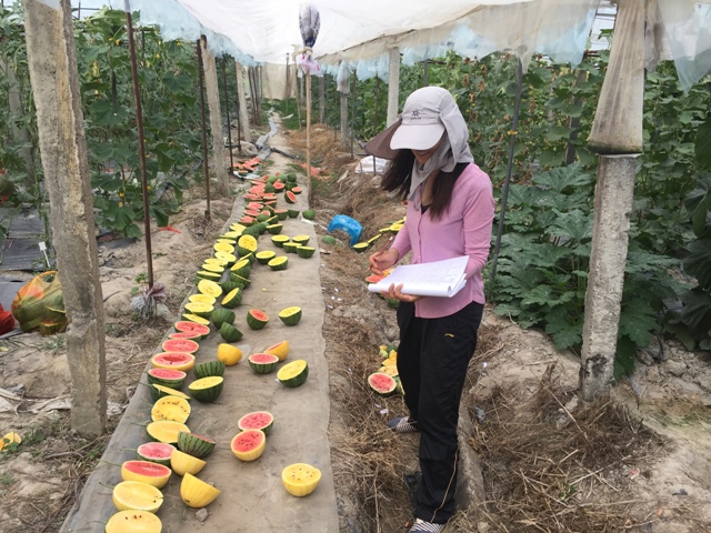 徐志红是郑州果树研究所的一名基层科研人员,从事的设施西瓜甜瓜的育种、栽培的应用研究工作,是一份普通而平凡的工作,需要有大量的田间试验数据支撑,因此一年有近4个月的时间是下乡到基地度过的。二十多年来,每到冬季,她在寒风瑟瑟的田野和闷热的温室大棚中来回穿梭,忍受三四十度的温差变换;夏季则是头顶烈日,尤其是在大棚,不到半个小时衣服就会湿透,但即使这样的工作环境,她也乐此不疲,对几百份试验材料的特性如数家珍,为鉴定、发掘、创新早熟、抗病、高产、优质等特异性状的育种资源打下了坚实的基础,在新品种选育工作中做出了较为显著的成绩。主要成绩有:参加制定农业行业标准3项;作为第一完成人或主要完成人,选育出14个品种,有20余个(次)通过国家和省(市)品种审(鉴)定,全部在生产中运用推广,为西甜瓜产业品种的更新换代做出了应有的贡献。具体品种有:黑蜜五号、郑抗四号、黄宝石、金玉玲珑、朝霞、金玉玲珑无籽1号、众天红等7个西瓜品种;中甜二号、网络时代、一品红、雪红、白玉满堂、中甜4号、网络2号等7个甜瓜品种;金玉玲珑及众天红2个小果型西瓜品种获植物新品种权。选育的品种中尤其是黑蜜五号无籽西瓜品种,曾是我国无籽西瓜的主栽品种之一,中甜一号则是我国长江中下游地区的主栽品种之一,这两个品种作为主栽品种之一在生产中推广运用了有十余年,为农民增产增收创造了巨大的经济效益。