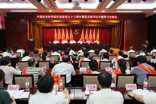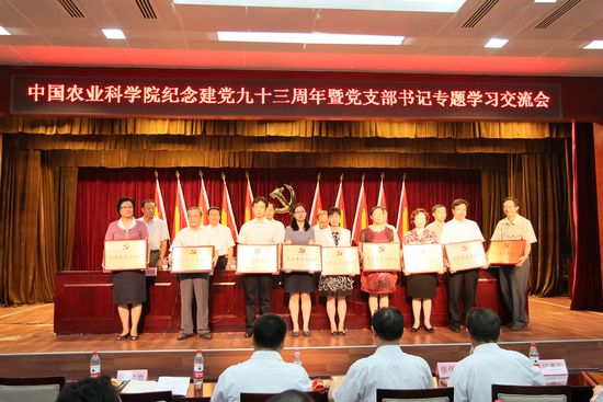 6月30日,中国农业科学院召开纪念建党93周年暨党支部书记专题学习交流会,表彰先进、重温党章、交流工作体会,庆祝党的生日。院党组书记陈萌山,副院长刘旭、李金祥、吴孔明,纪检组组长史志国,院党组成员、人事局局长魏琦出席会议。会议由刘旭主持。