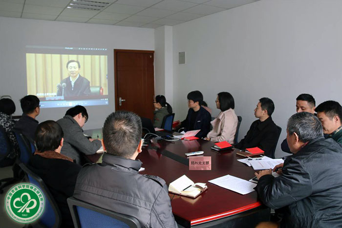2017年12月29日,棉花所郑州党支部组织召开党员大会,开展学习贯彻党的十九大精神活动,集中观看学习了中央宣讲团成员、农业部部长韩长赋在农业部宣讲党的十九大精神的会议实况录像。会议由支部书记赵新华主持。